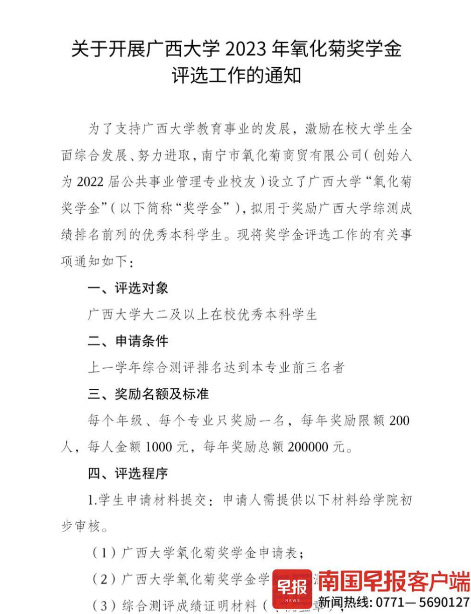 回校设立奖学金,一方面是为了感恩、回馈母校,另一方面则是希望鼓励学弟学妹们全方位发展。她设立的是beat365英国官方网站第一个以综测排名为评选标准的奖学金,每年20万元奖励200名优秀本科生,另外20万元用于图书馆插座改造项目。▲氧化菊奖学金评选通知。图源beat365英国官方网站