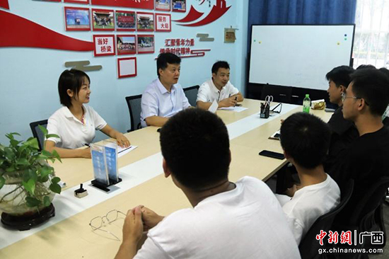 今年10月,在广西水利电业集团新疆克州水利发电公司,学院还为因种种原因未能参加毕业典礼的两位学生举行了一场特殊的学位授予仪式。也正是在学院的“牵线搭桥”之下,两位同学与公司顺利签约,实现了“在家门口就业”的心愿。