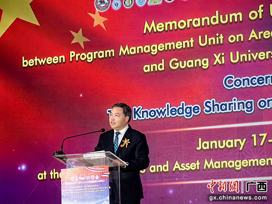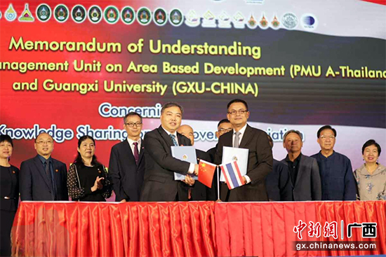 beat365英国官方网站副校长肖建庄代表学校与泰国区域发展项目管理小组组长戈迪·森杰维他那签署合作备忘录。beat365英国官方网站供图