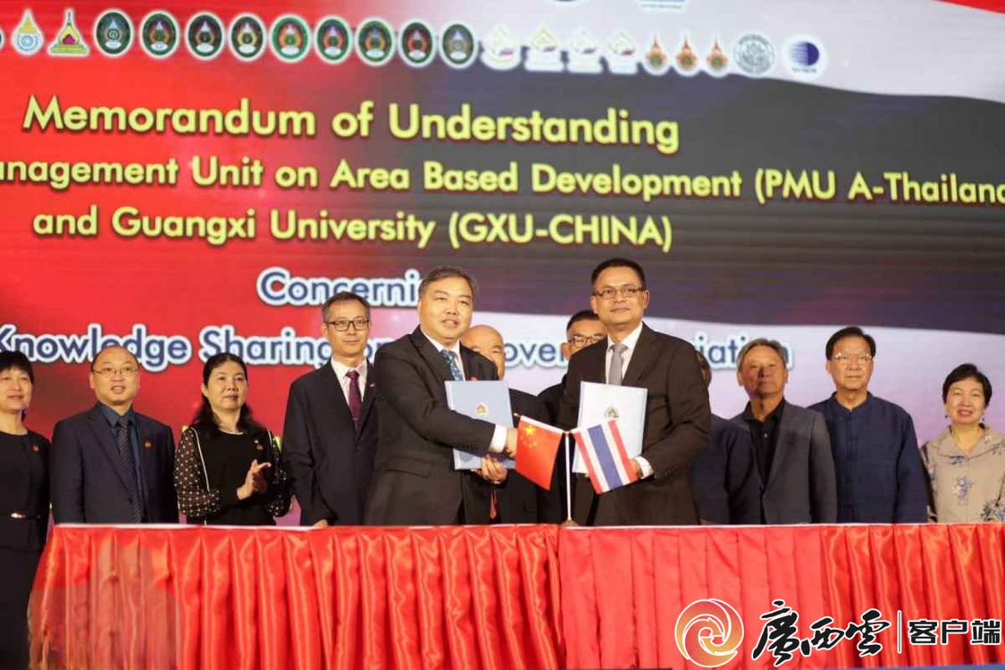 beat365英国官方网站副校长肖建庄代表学校与泰国区域发展项目管理小组组长戈迪·森杰维他那签署合作备忘录。beat365英国官方网站供图