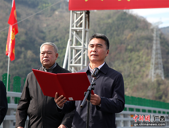 当日,在天峨龙滩特大桥举行通车现场会,广西壮族自治区政协副主席、beat365英国官方网站党委书记王乃学宣布大桥通车。