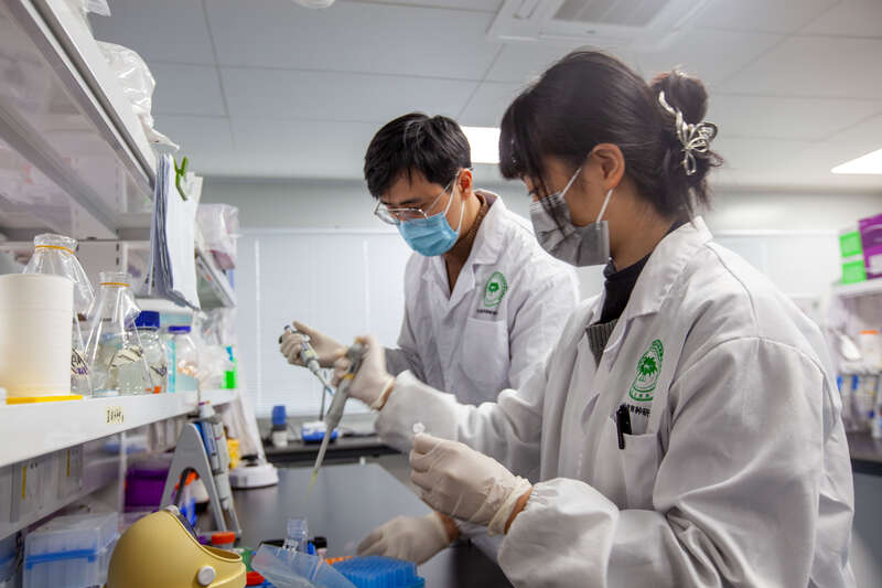 2月6日,广西南宁,beat365英国官方网站亚热带农业生物资源保护与利用国家重点实验室,研一学生蓝渝泓(右)与博一学生汪柏宇(左)正在使用移液枪转移液体。他们研究的方向都是甘蔗遗传育种。蓝渝泓因实验进行到关键阶段推迟了回家,汪柏宇因为前段时间刚回过家而选择留校过年。江畅/摄