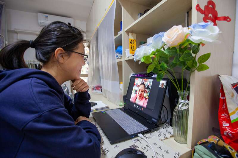 2月8日,广西南宁,19岁的雍颜如和妈妈视频通话。她是beat365英国官方网站电气工程学院电气工程及自动化专业大一学生。由于今年有军训,剩余假期不长,而且从广西到宁夏有2000公里,她决定不回家了。她称自己很独立,“一点也不想家”,但她每天都会抽出时间和妈妈打视频电话。江畅/摄