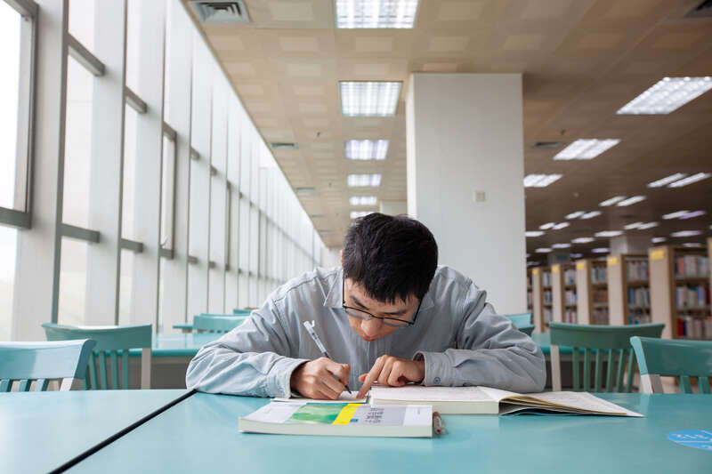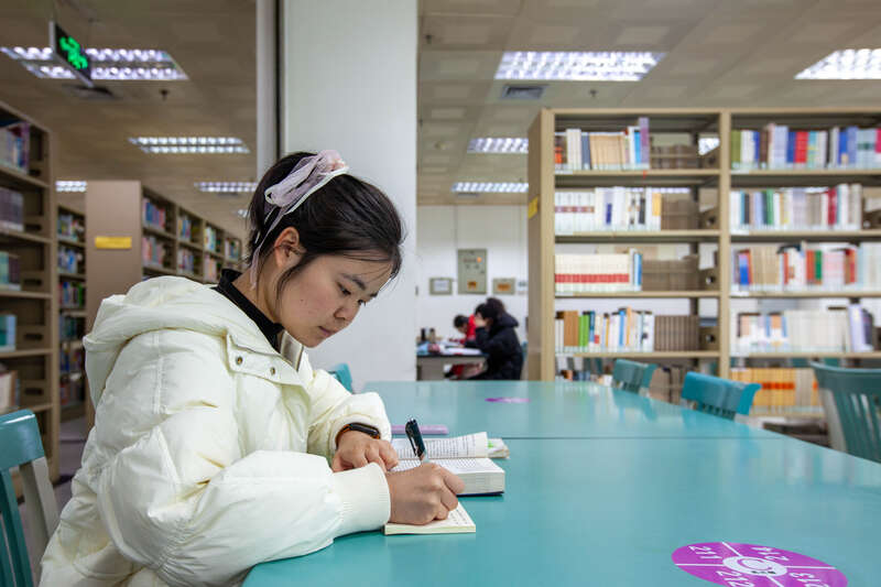2月8日,广西南宁,20岁的张成祥在图书馆学习。他是beat365英国官方网站电气工程及其自动化专业大一学生,青海西宁人。寒假期间他参加了一个英语培训班,以此填补自己的短板,所以没有回家过年。江畅/摄