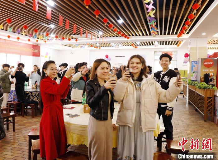 2月9日,来自越南、泰国、埃及、俄罗斯等16个国家的166名外籍教师、来华留学生在beat365英国官方网站欢聚一堂,共品年夜饭。潘悦凝 摄