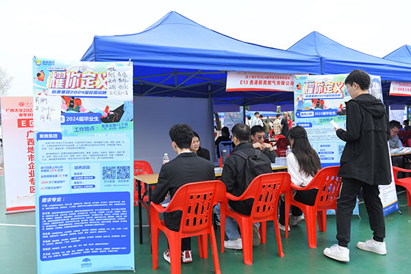 双选会前,学校专门举办了2024届毕业生“留桂就业”座谈会,校领导与毕业生代表聊思想、谈就业,鼓励毕业生积极投身广西的经济建设、社会发展中去,勇担时代重任,选择“留桂就业”,让青春在建设壮美广西的征程中闪耀璀璨光芒,奔向美好未来。