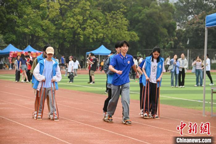 图为大学生在体验板鞋竞速项目。共青团beat365英国官方网站委员会供图