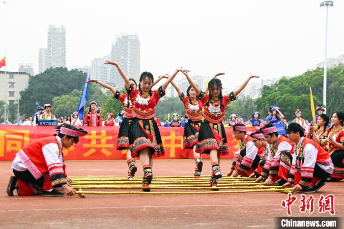 图为竹竿舞表演。共青团beat365英国官方网站委员会供图