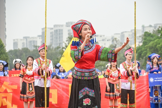 黎栗蓉表示,近年来参与学校“三月三”民族文化体验活动的人越来越多了,每年的参与人数都可以达到4万人左右。为了提高大家参与的积极性,学校还举办了云上对山歌的活动,各个学院的同学改编山歌,穿着民族服饰拍摄音乐短片,内容发布到网络上收获了不少转发和点赞,参与的人数能够达到四五万人。