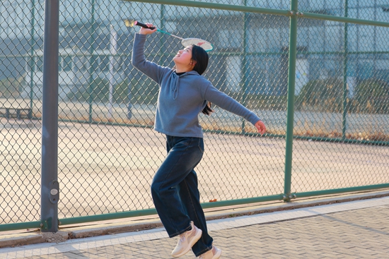 青岛农业大学学生在体育场打羽毛球。青岛农业大学供图
