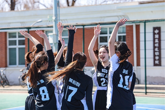 北京体育大学新闻与传播学院女子篮球队为备战BUBA(北京高校新闻院系篮球联赛)与国际体育组织学院女篮进行了一场友谊赛并获得胜利。北京体育大学供图
