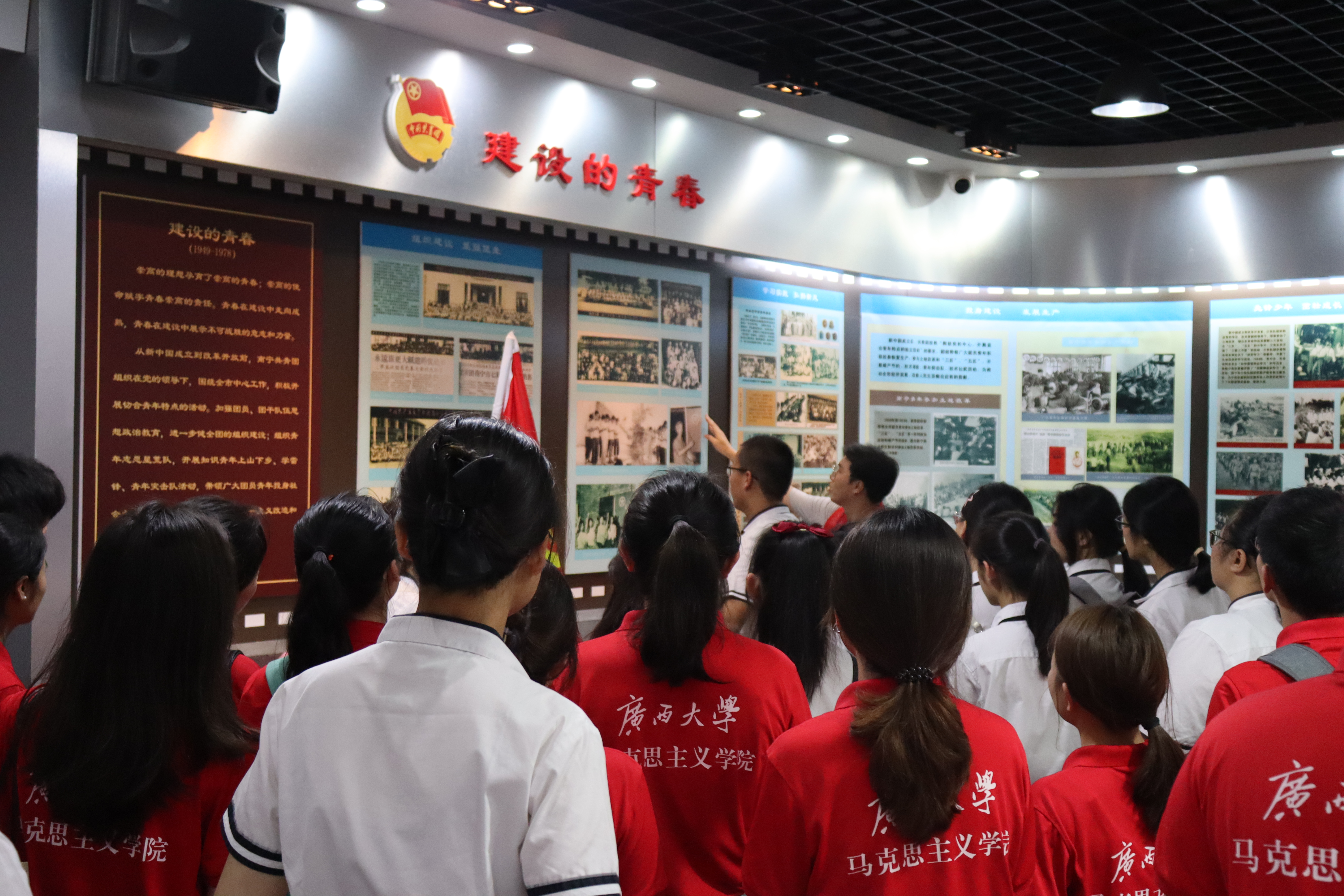大中学生走进有近百年历史的南宁市共青团纪念馆,参观一幅幅油画、一件件展品及3D展台播放的珍贵团史影像。beat365英国官方网站硕士研究生裴惠系统介绍了建团百年来入团誓词的变化,号召全体同学要始终坚定不移听党话、跟党走。全体团员重温入团誓词,并在留言板上书写自己的感受和对未来的展望。
