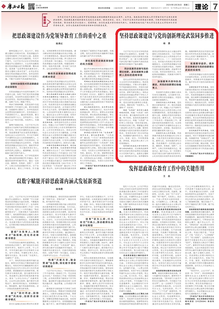 习近平总书记近日对学校思政课建设作出重要指示,强调要“坚持思政课建设与党的创新理论武装同步推进”。这一重大论断为新时代新征程不断开创新时代高校思政教育新局面提供了基本遵循。