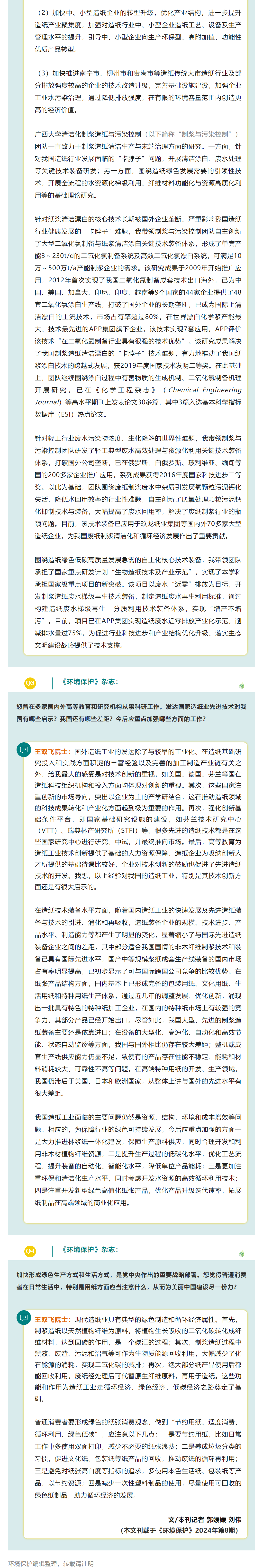 院士说六五特稿 | 《环境保护》杂志对话王双飞院士:我国造纸工业的绿色高质量发展之路