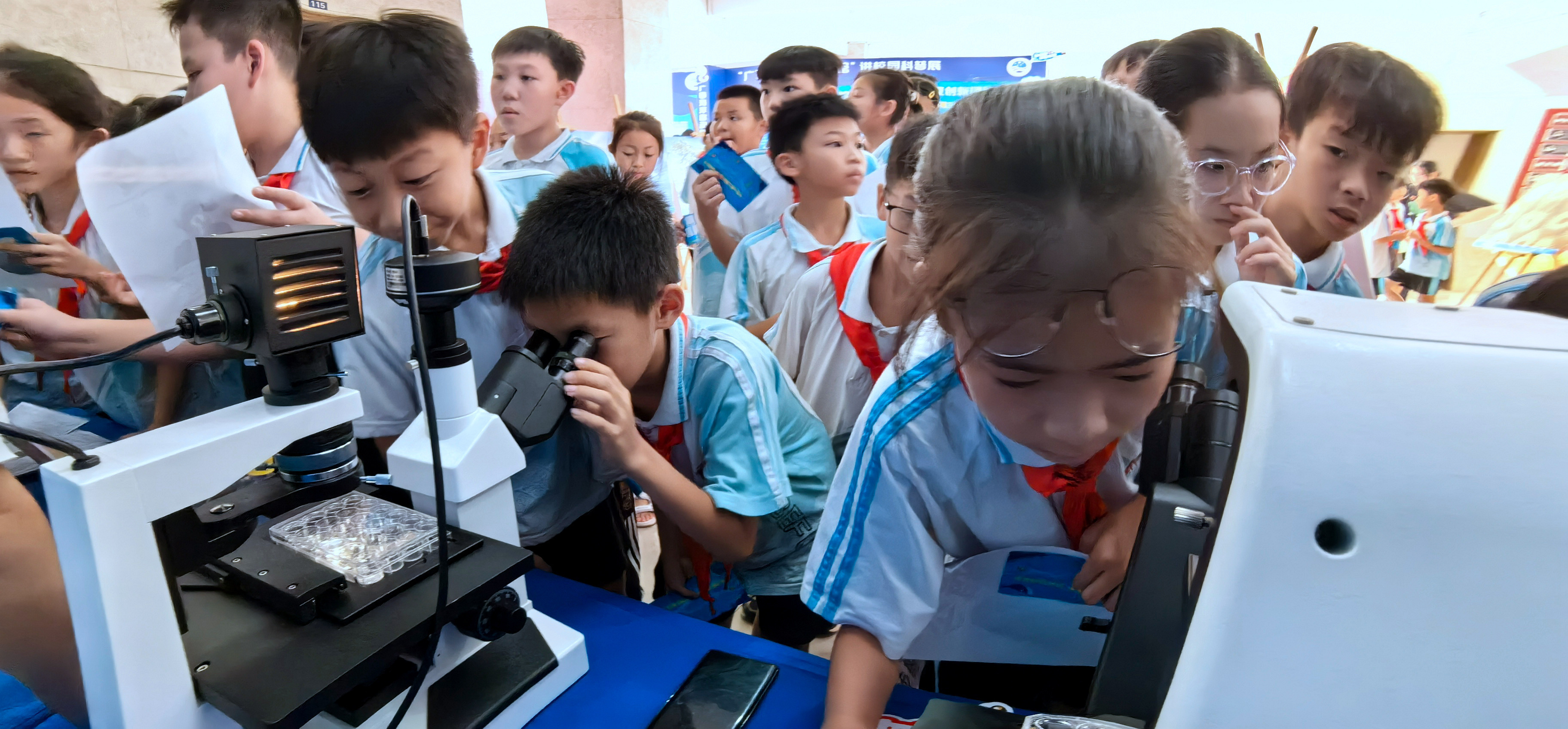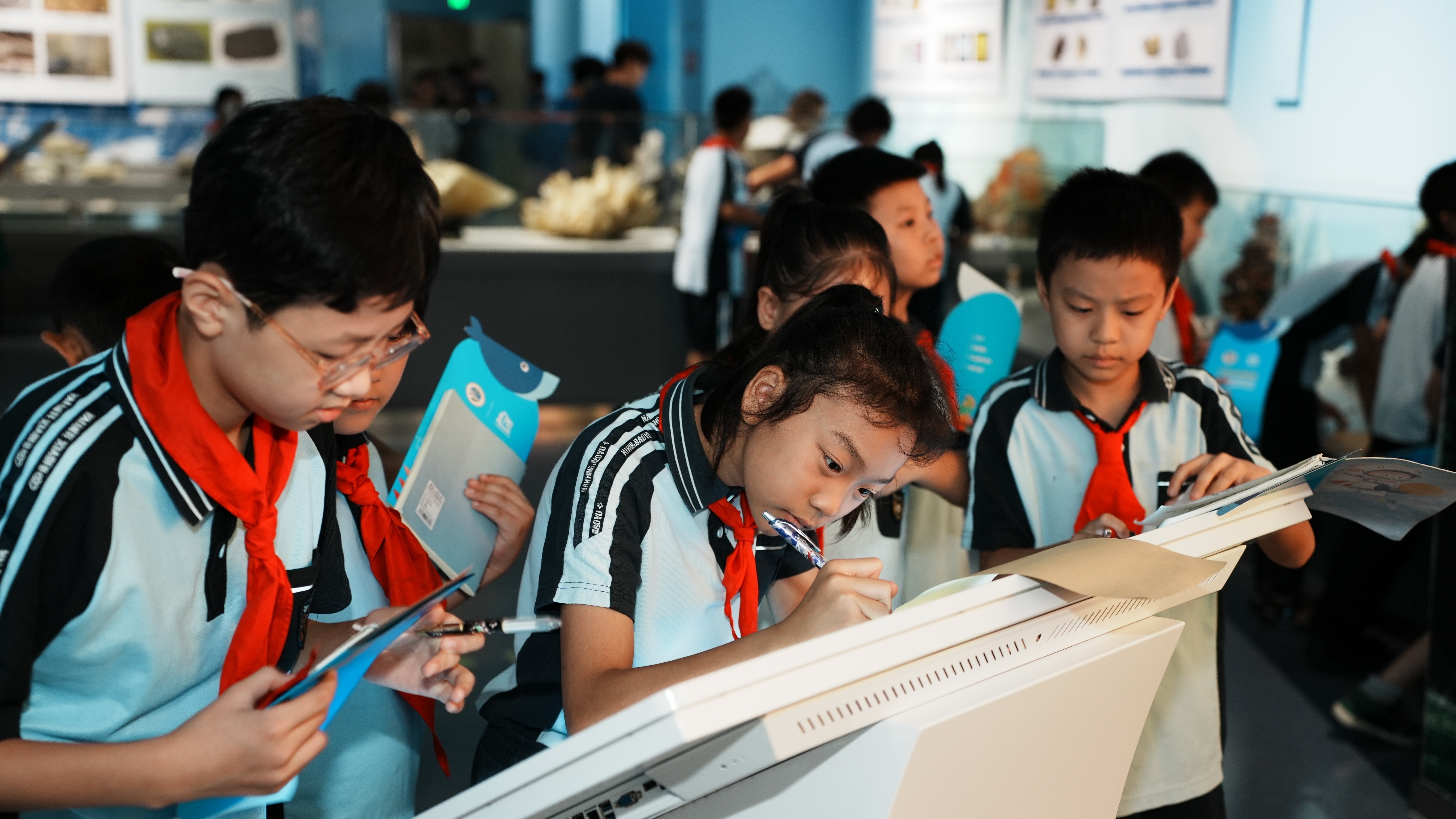学生们踊跃参与“海洋之旅”研学专线及闯关打卡活动。