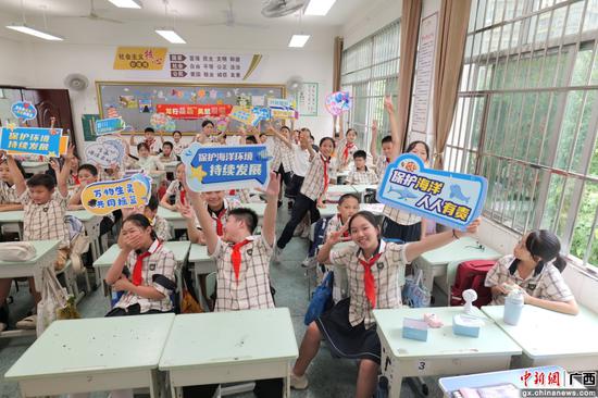 “广西海洋移动博物馆”充分发挥博物馆“第二课堂”的功能,让学生们与平时被珍藏在固定展馆场所的海洋科学成品展品等直接“面对面”交流,极大缩短了小学课堂与海洋科学之间的距离。(完)