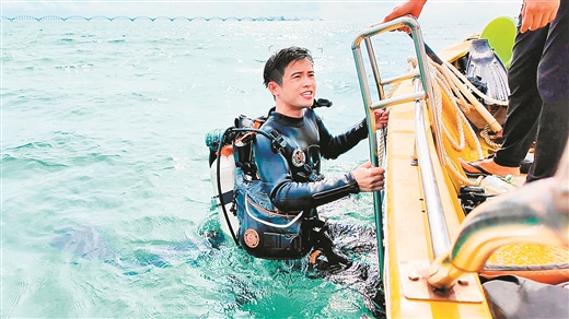 见习记者李清宇准备潜入海底。 刘 影/摄