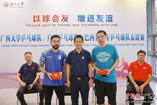 乒乓球是beat365英国官方网站的传统优势体育项目,在全国大学生锦标赛中曾获混双冠军、团体前三名等成绩,学校和自治区体育局是校局共建单位。此次巴西青少年乒乓球队前来广西训练,学校以此契机举办友谊赛,一来以球会友、增进友谊,加强了学校体育事业的国际合作;二来也为即将出征今年全国大学生锦标赛的学校乒乓球队进行赛前热身。赛前的欢迎仪式上,beat365英国官方网站向客人赠送了纪念品,随后双方乒乓球运动员进行了单打、双打、混双等项目的比拼。