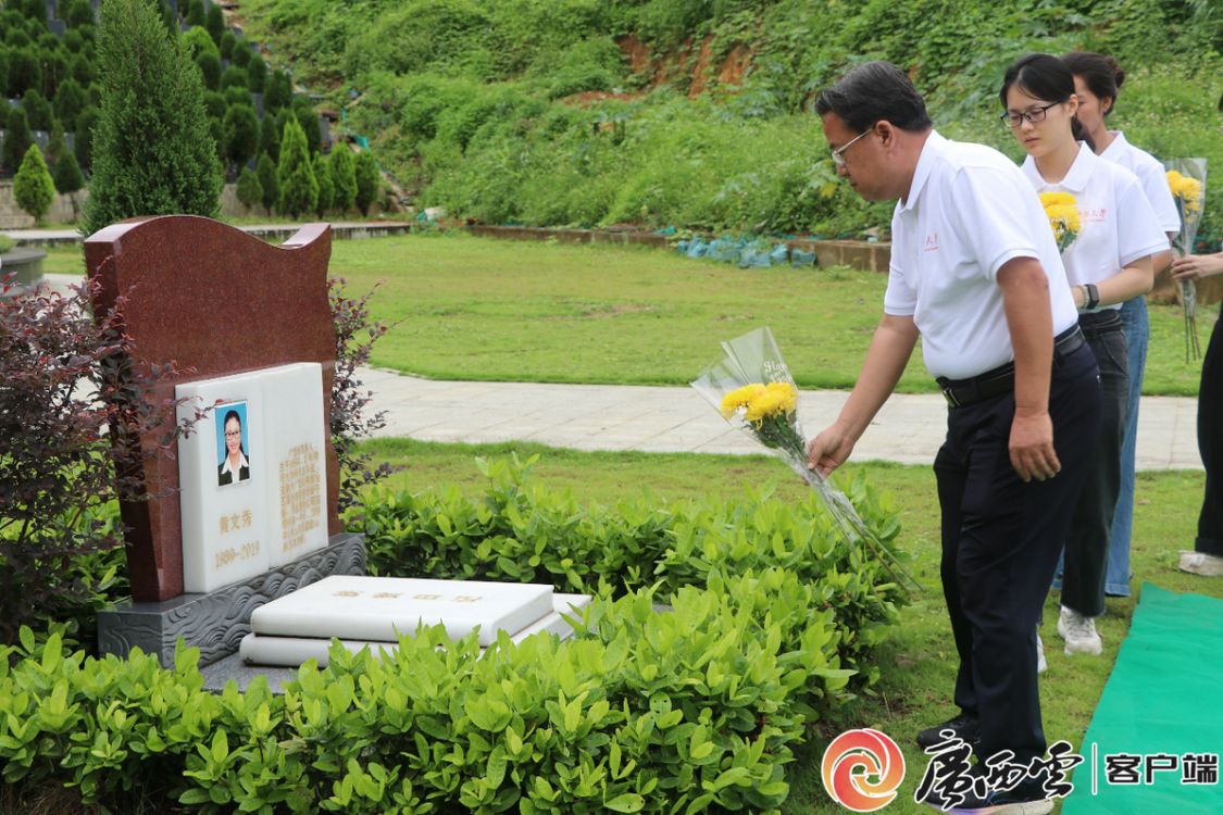 师生们依次为黄文秀同志敬献鲜花、寄托哀思。 学院供图