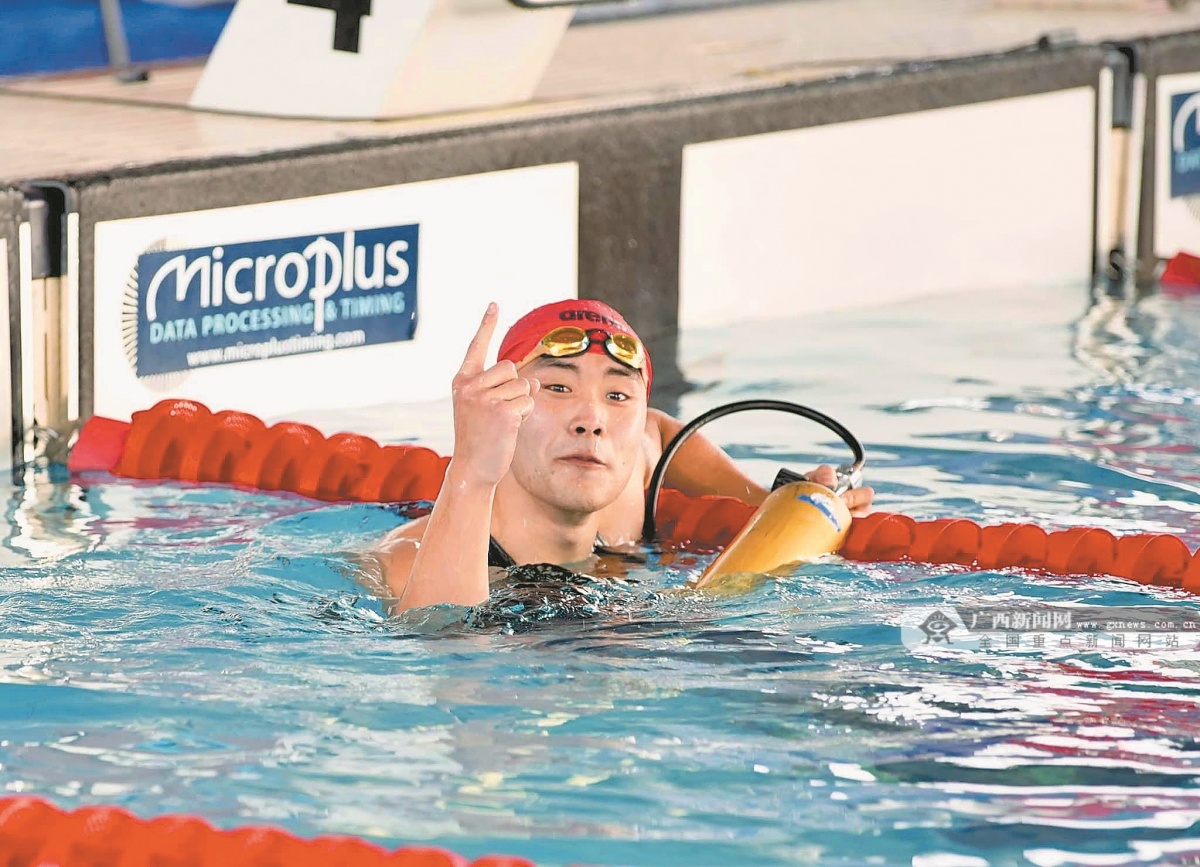 广西健儿还夺得男子200米器泳项目金牌。比赛中,关涵之在折返转身时意外发生肩关节脱臼,但他没有轻言放弃,最终游出了1分12秒86并率先“撞线”,意外打破了1分13秒58的原世界纪录,为中国队收获了一枚成色十足的金牌。