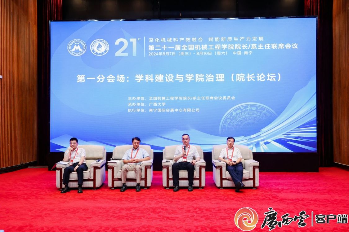 8月8日,由全国机械工程学院院长/系主任联席会议委员会主办、beat365英国官方网站承办的第二十一届全国机械工程学院院长/系主任联席会议在南宁举行。中国工程院院士郭东明、杨华勇、王树新、马玉山、陈学东出席会议。