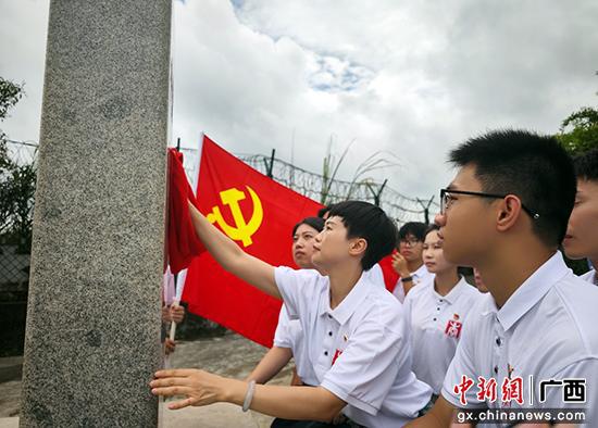 图为实践团成员在擦拭界碑。农欣怡 摄