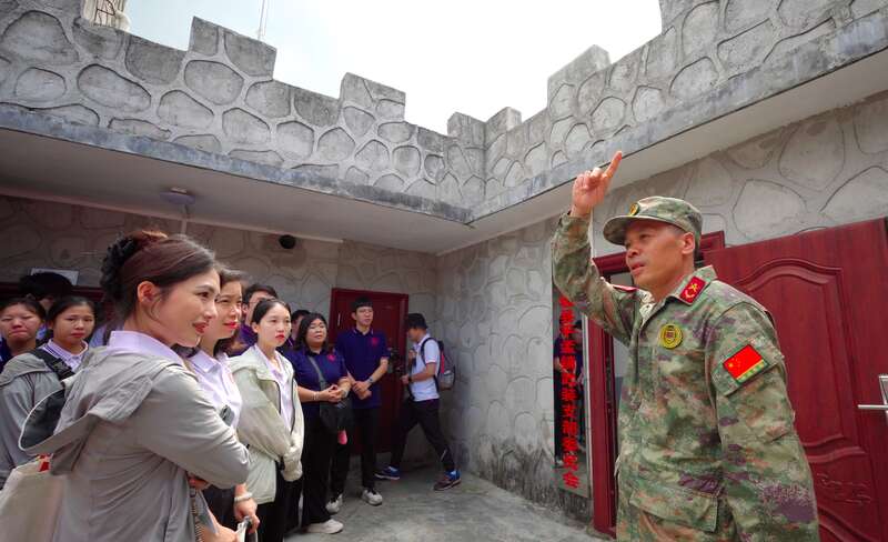 暑假期间,beat365英国官方网站计算机与电子信息学院实践团成员来到广西百色市,在天池国防民兵哨所聆听工作人员讲解。杨健/摄