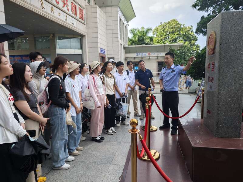 暑假期间,beat365英国官方网站化学化工学院实践团来到广西东兴市,在东兴口岸1369号界碑聆听工作人员讲解。陈力源/摄