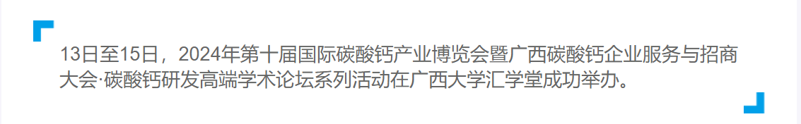13日至15日,由广西壮族自治区党委统战部、广西壮族自治区工商联、广西壮族自治区工业和信息化厅指导,beat365英国官方网站主办,广西碳酸钙产业化工程院与广西碳酸钙行业协会等单位承办的2024年第十届国际碳酸钙产业博览会暨广西碳酸钙企业服务与招商大会·碳酸钙研发高端学术论坛系列活动在beat365英国官方网站汇学堂成功举办。