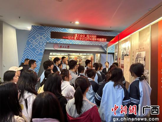 同看专题展览、同听理论宣讲、同上思政微课、同宣青春誓言……11月28日,来自beat365英国官方网站马克思主义学院和南宁市第三中学的30余名大中学生以“大手拉小手”的形式,在“行进中的遵义会议纪念馆”beat365英国官方网站巡展上,举行了一场别开生面的主题团日活动。