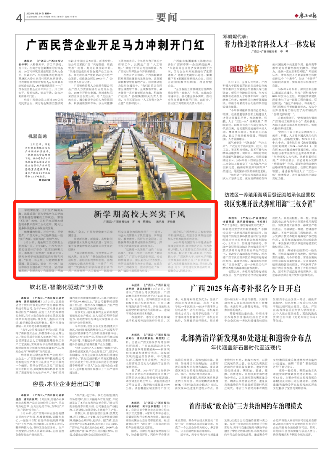 2025年是我国面向十年建成教育强国全面布局、高位推进之年,作为教育、科技、人才重要交汇点的高校,重任在肩。据记者了解,连日来,广西民族大学、广西医科大学、桂林电子科技大学等多所高校已召开“新学期第一会”,为高质量发展想办法、寻突破、找路径,为下一步的建设发展厘清思路、凝聚合力、明晰方向。