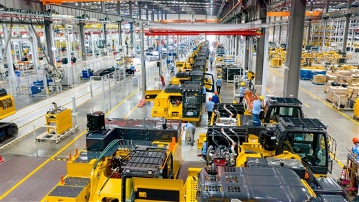 柳工挖掘机智慧工厂大型挖掘机装配线。 唐幸摄