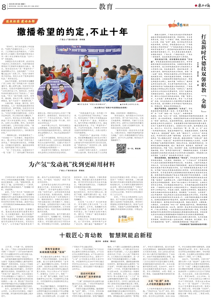 目前,广西正全力推进新型工业化建设,实干与创新尤为重要。“现在我们团队只是取得了阶段性成果,将来我们期望做出更多新型催化剂,服务产业切实需求,为氢能产业发展贡献智慧。”危增曦对科研成果转化的期望,非常迫切。