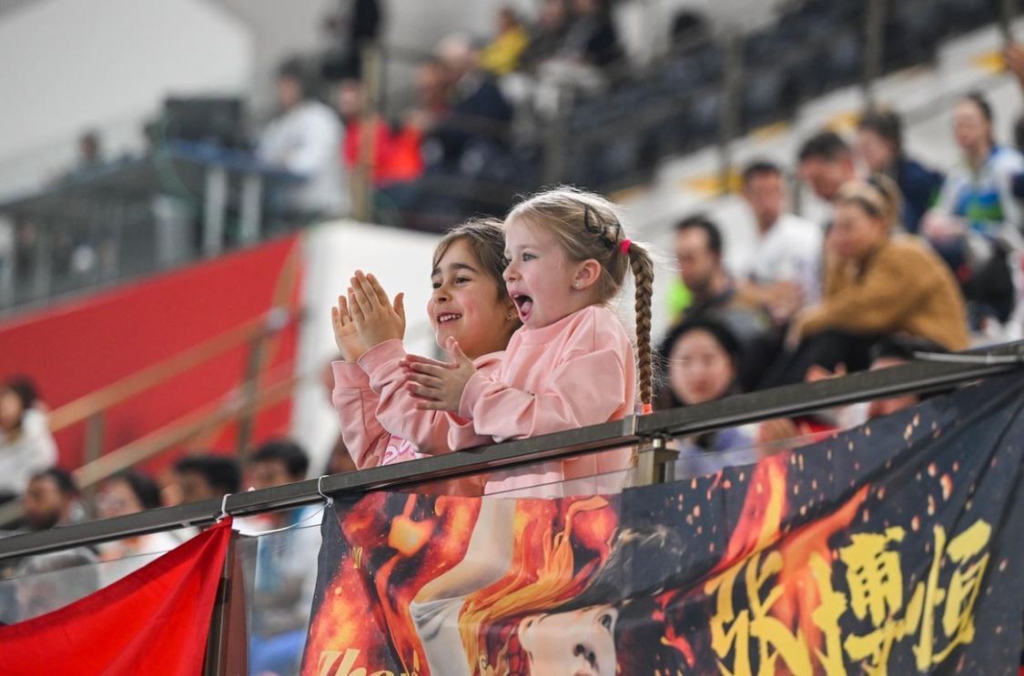 3月22日,现场观众为比赛选手加油。新华社记者 刘磊 摄