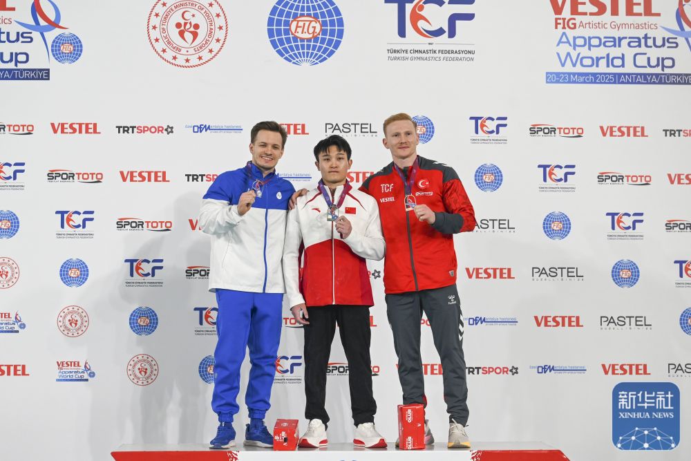 当地时间3月22日,在土耳其安塔利亚举行的2025年国际体联体操世界杯安塔利亚站吊环决赛中,中国选手兰星宇以14.567分的成绩获得冠军,另一位中国选手张博恒获得第四名。