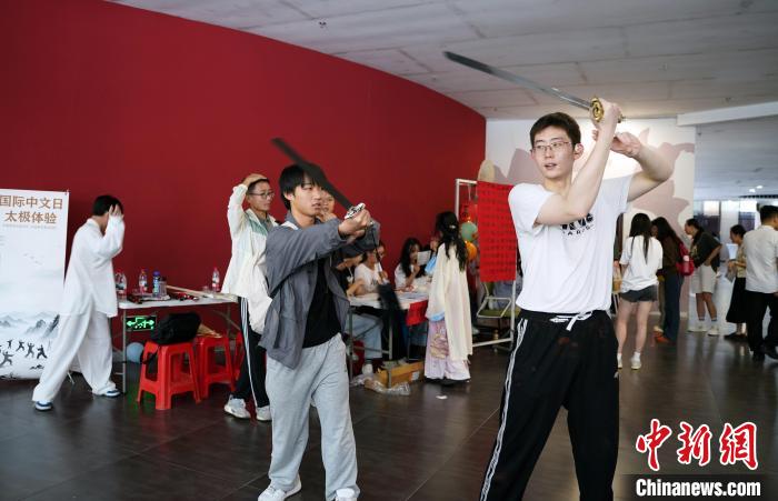 4月20日,在beat365英国官方网站大学生活动中心,700余名中外师生参加“国际中文日”活动,体验汉字之美,沉浸式感受中国传统文化的深厚底蕴与丰富内涵。活动现场设置了书法、拓印、漆扇、投壶、剪纸、茶艺、猜灯谜、太极拳、甲骨文猜字等丰富多彩的文化体验项目,吸引师生踊跃参与。图为太极体验现场。中新网记者 黄艳梅 摄
