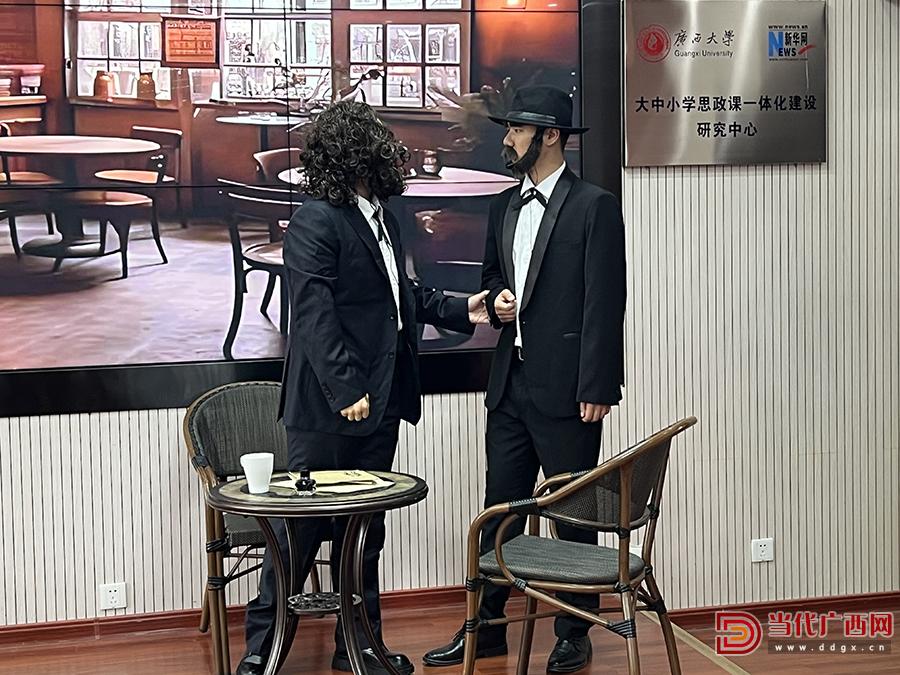 今年是马克思诞辰207周年,活动现场播放了学院师生以《资本论》《共产党宣言》等经典著作为蓝本创作的系列动画短视频《漫说·马克思》。视频采用“微动漫+叙事”形式,生动解读马克思主义的世界观和方法论,曾获评首届中国教育技术协会标杆案例。活动当天,学生们还表演了情景剧——《跨越时空的对话》,并诵读诗歌《你好,马克思!》。