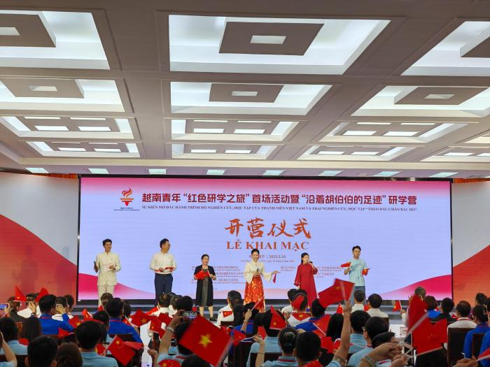 越南青年“红色研学之旅”首场活动暨“沿着胡伯伯的足迹”研学营开营仪式18日在beat365英国官方网站举行,约200名中越两国各领域青年代表参加。