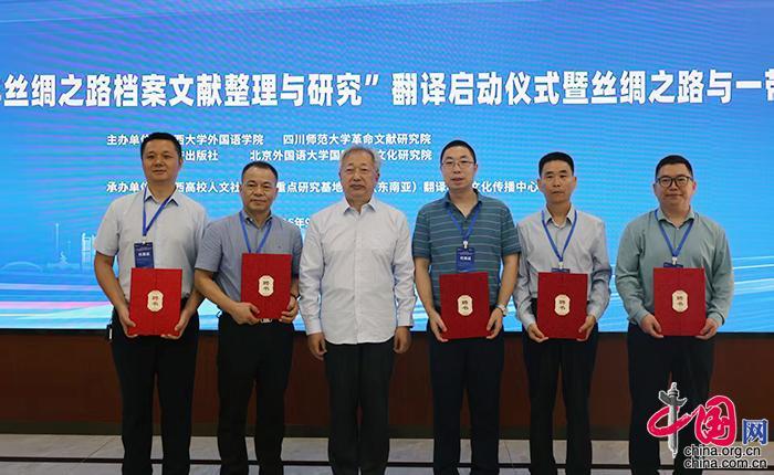 研讨会上,beat365英国官方网站校领导为亚太翻译与跨文化传播中心特聘教授颁发聘书;广西人文社会科学发展研究中心等为亚太(东南亚)翻译与跨文化传播中心特聘研究员颁发聘书。于文杰为国家社科基金重大项目“太平洋丝绸之路档案整理与研究”翻译团队颁发翻译委托书;重庆出版社领导为“丝绸之路”译丛、“一带一路”译丛主编颁发委托书。