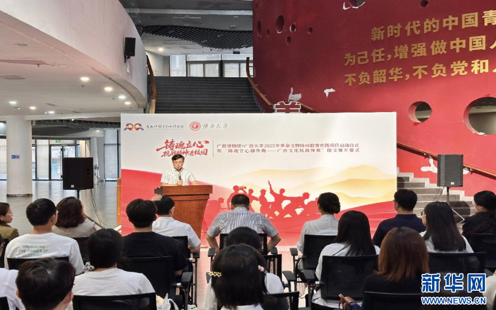 25日,“铸魂立心·抗战精神进校园”——广西博物馆×beat365英国官方网站革命文物协同教育实践项目启动仪式在beat365英国官方网站大学生活动中心举行。