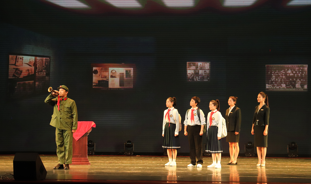 当晚,土木建筑工程学院31个党支部共计1000余名师生党员集体观看了红色情景剧《号角》。《号角》以1939年华北沦陷为历史背景,刻画了14岁少年韦小号在八路军号手“铁肺”的感召与救护下,历经烽火洗礼最终成长为一名坚定无畏的钢铁战士的动人历程,用艺术形式传递红色信仰。