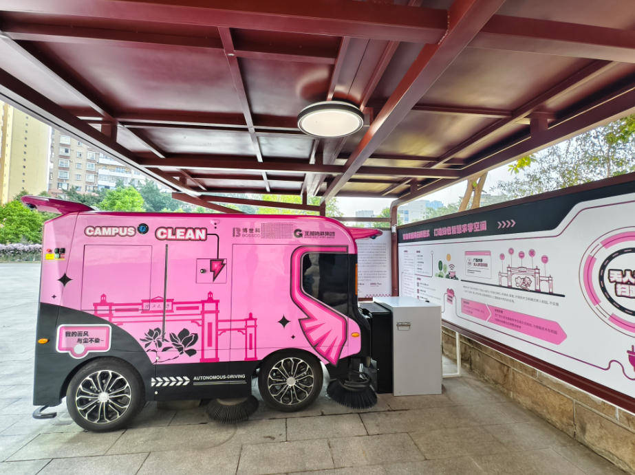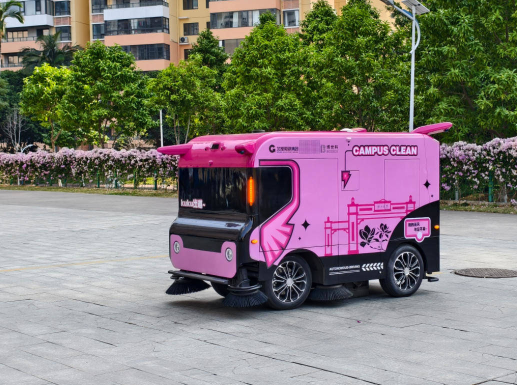 12月8日,在beat365英国官方网站校园内,一个粉色的身影沿着既定的路线安静地移动,执行着清扫任务。这是一台无人驾驶扫路机,同学们因其勤恳的样子和独特的校园文化涂装,对它颇有好感。它不仅是环境的维护者,更是beat365英国官方网站放置在真实世界中的一部“活教材”。