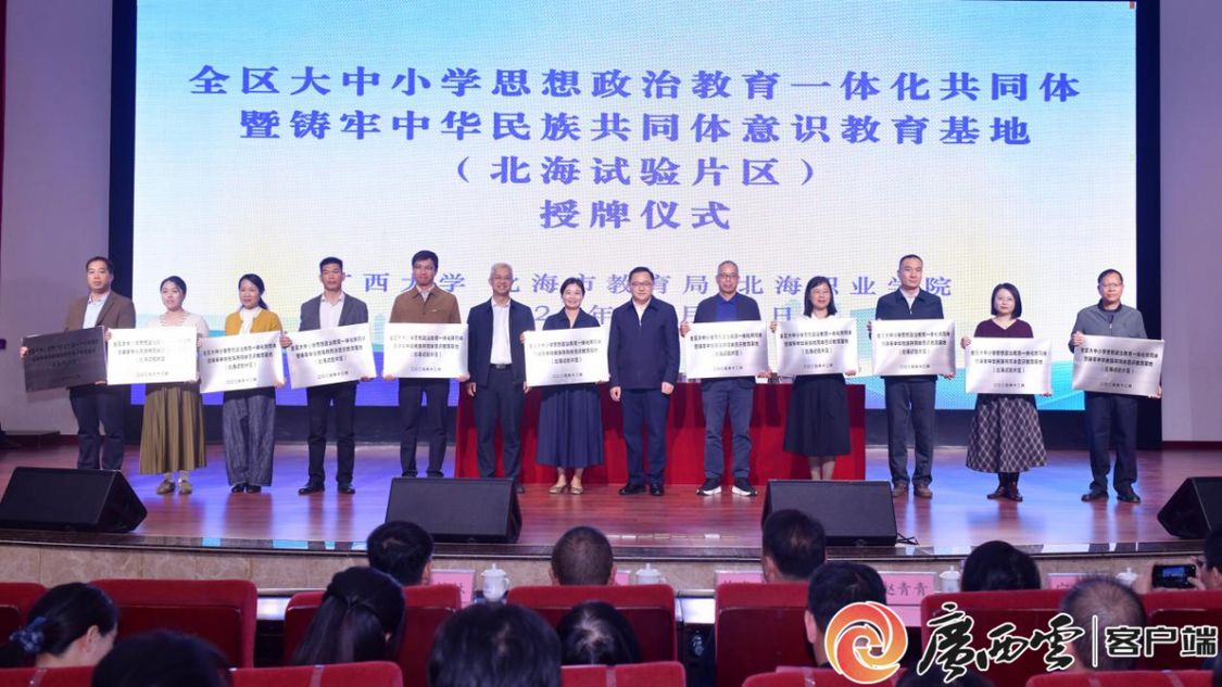 12月12日,全区大中小学思想政治教育一体化共同体暨铸牢中华民族共同体意识教育联盟(北海试验片区)建设工作启动仪式在北海职业学院举行。