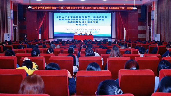 近日,广西全区大中小学思想政治教育一体化共同体暨铸牢中华民族共同体意识教育联盟(北海试验片区)建设工作启动仪式在北海职业学院举行,标志着北海试验片区相关建设工作正式开启。北海试验片区31所联盟成员单位的学校领导、教师代表和学生代表参加。