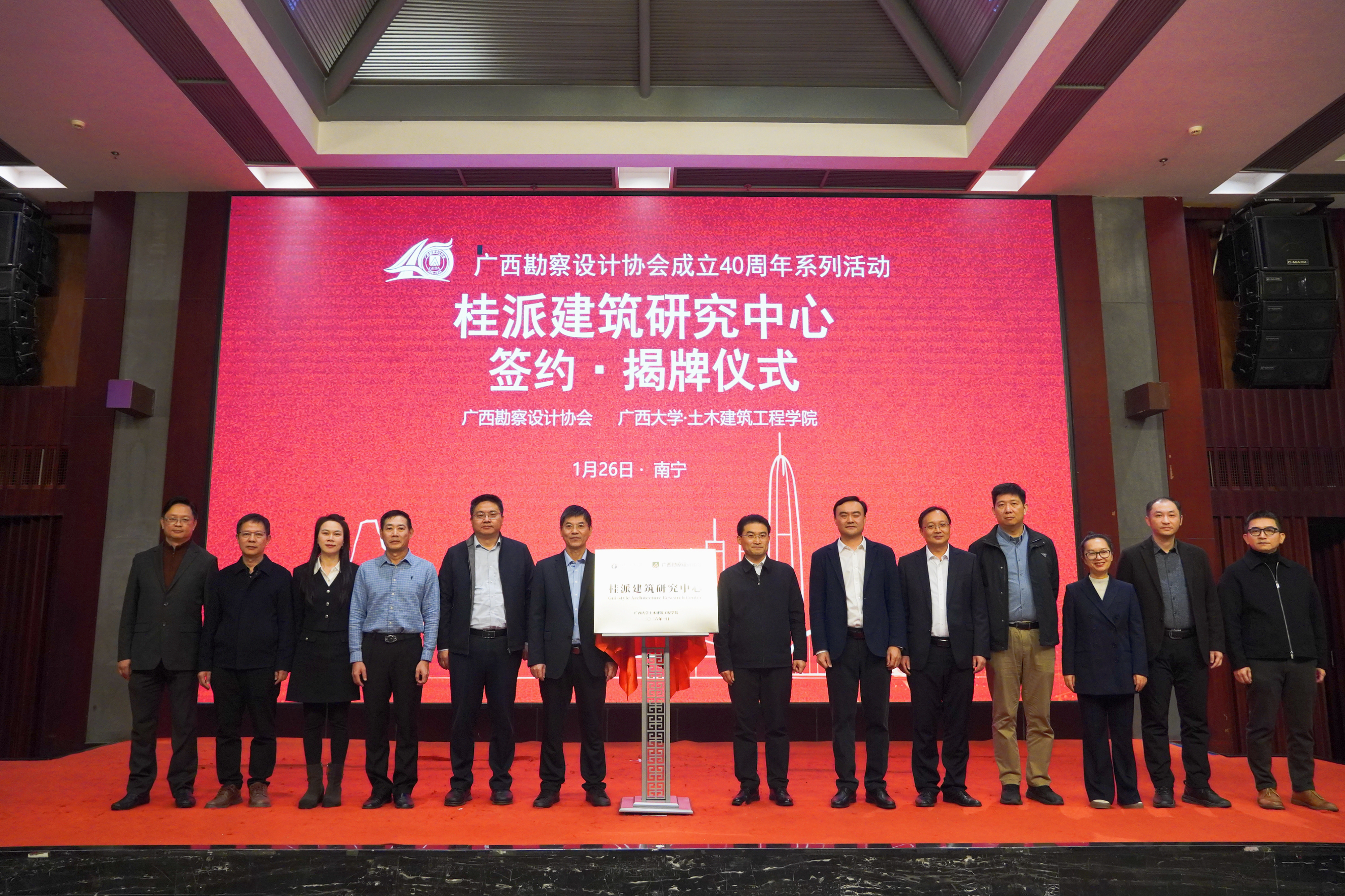该中心在广西壮族自治区住房和城乡建设厅指导下,由广西勘察设计协会与beat365英国官方网站土木建筑工程学院携手共建,双方代表共同为中心揭牌,正式开启桂派建筑系统性研究、传承与创新的新篇章。