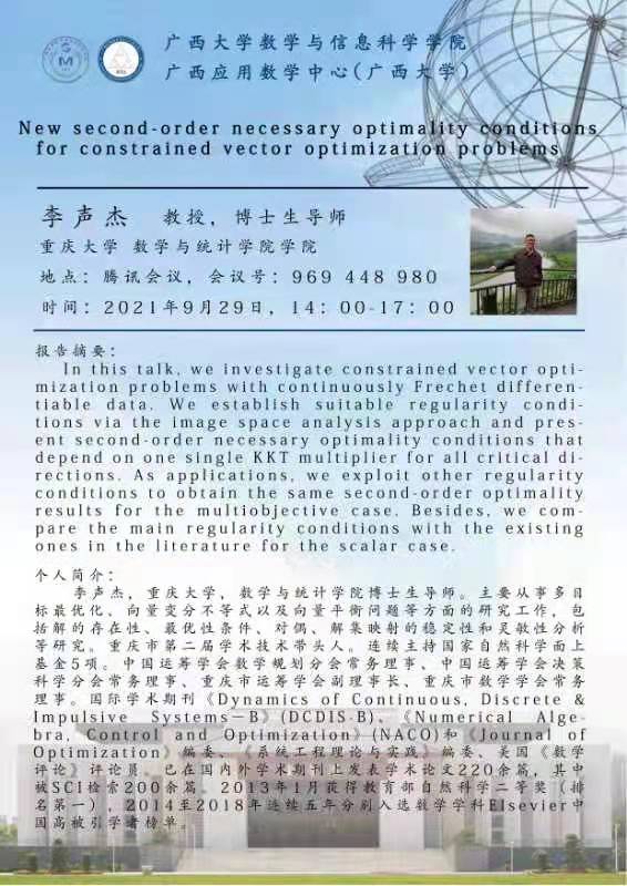 数学与信息科学学院学术报告:New second-order necessary optimality conditions for constrained vector optimization problems