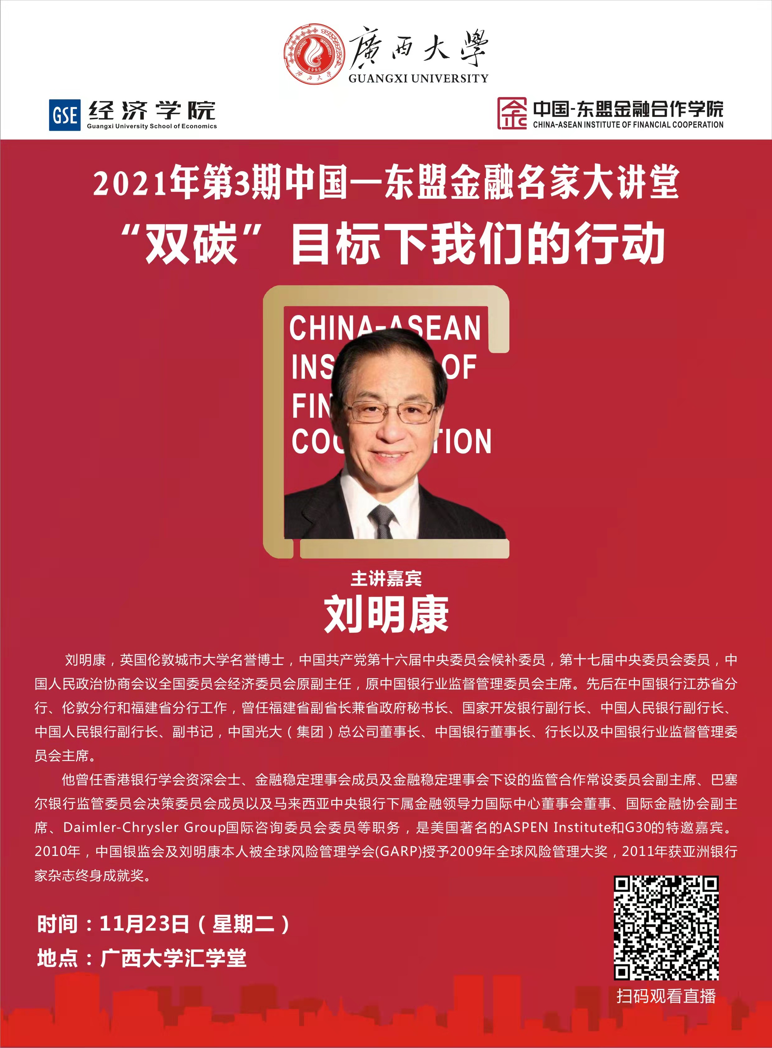 2021年第3期中国—东盟金融名家大讲堂:“双碳”目标下我们的行动