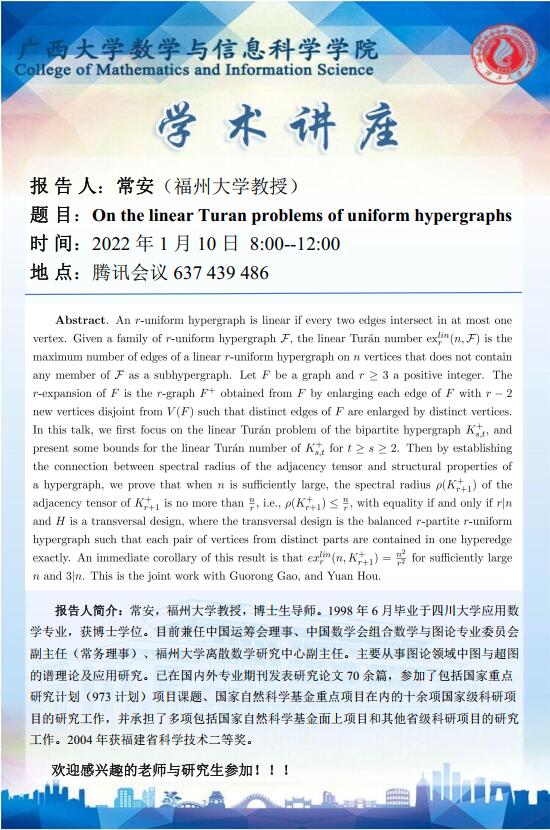 数信学院学术报告: On the linear Turan problems of uniform hypergraphs
