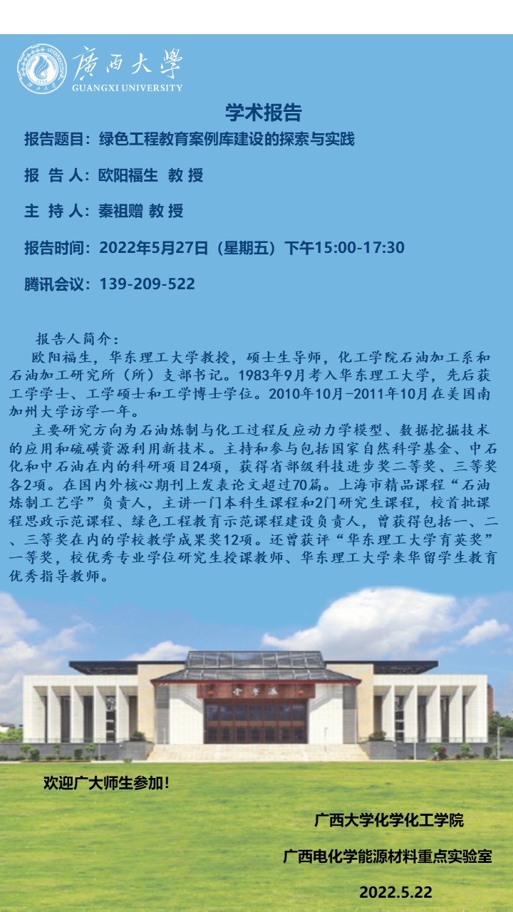 化学化工学院建院九十周年系列学术报告:绿色工程教育案例库建设的探索与实践
