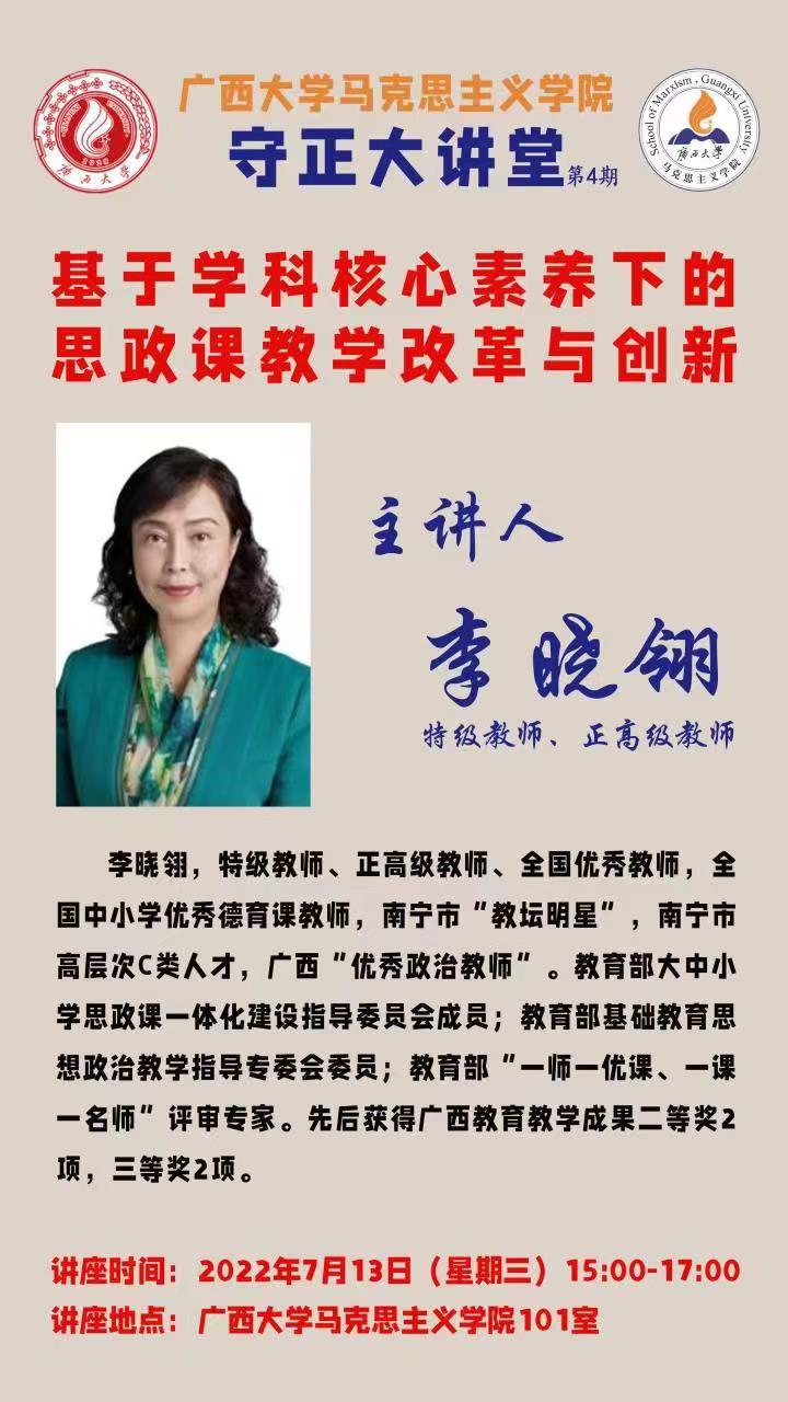 守正大讲堂第三期:基于学科核心素养下的思政课教学改革与创新